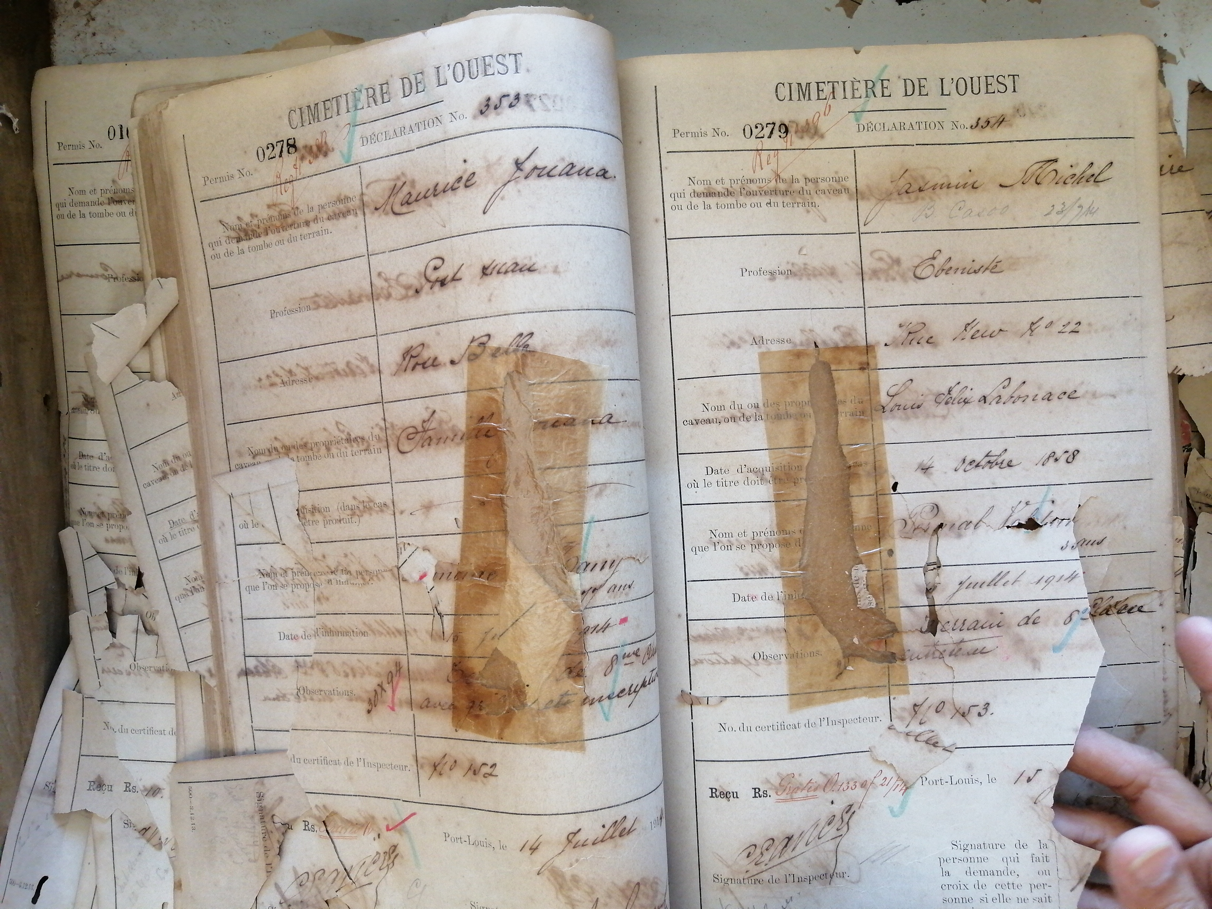 below is intended as a guide. The original records are available in the Municipality of Port Louis Offices at the Western Cemetery. A copy can be viewed by clicking on the photo number. These records comprise the Burial Records and Burial Index which date from 1890, and the Section Index which was compiled around 1904/1905. They are supplemented by the Ancien Index, a survey of some of the tombstones.