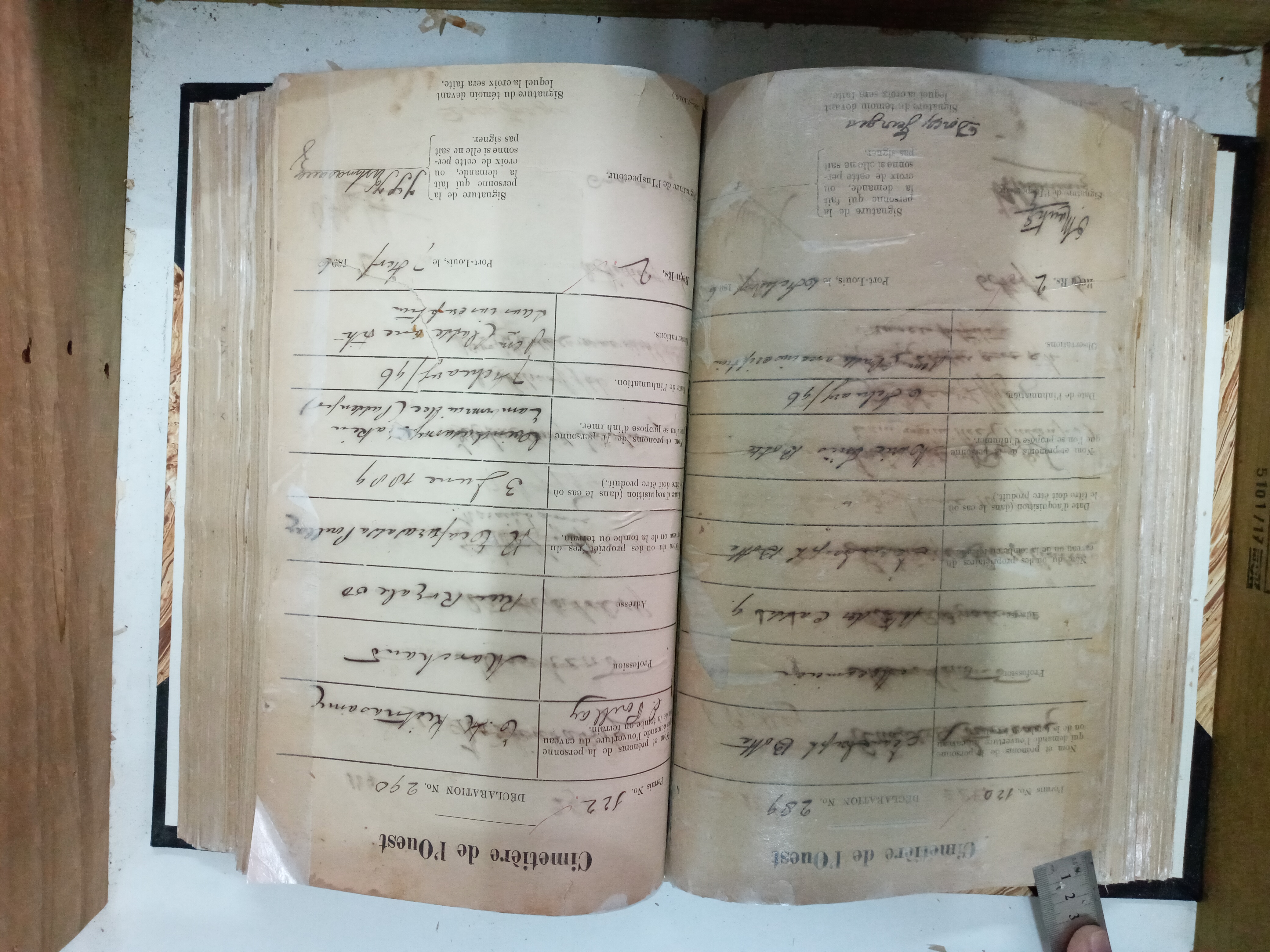 Les registres ont été transcrits en respectant le même format dans lequel ils ont été rédigés. Le plus grand soin a été pris pour transcrire les informations fidèlement, mais un grand nombre de documents sont abîmés ou sont illisibles, et Sauvegarde du Cimetière de l’Ouest Ltée ne peut être tenue responsable pour les erreurs éventuelles. Toute correction serait la bienvenue.